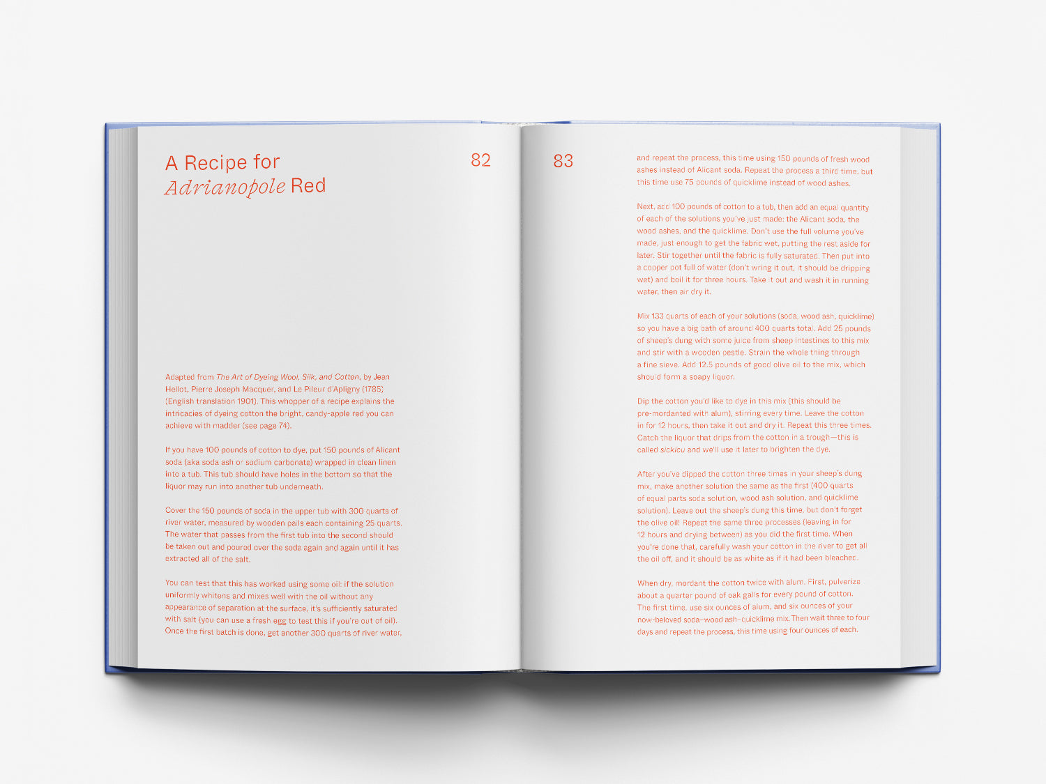 In Pursuit of Color: From Fungi to Fossil Fuels: Uncovering the Origins of the World's Most Famous Dyes brings together historic techniques, archive photography, specimens and present-day events to tell the histories of some of the world’s most important dyestuffs. A 32-page supplement accompanies the volume, detailing practical applications and the chemistry behind dyeing processes. The book comes in three different covers (red, yellow and blue) which are shipped randomly as a further happy surprise.