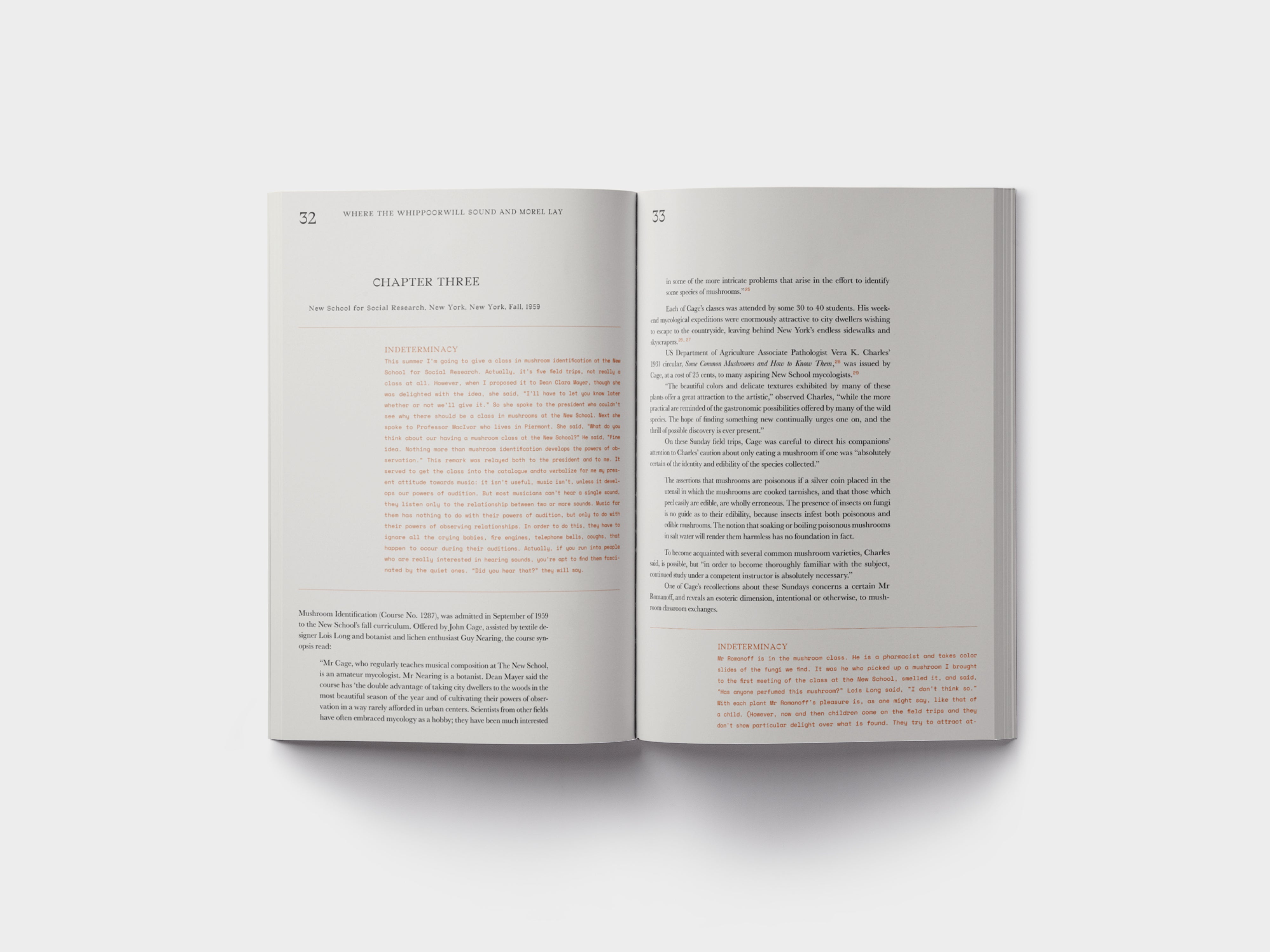 John Cage: A Mycological Foray draws readers across the idiosyncratic, mushroom-suffused, innermost landscape of celebrated American composer John Cage. Upon the remarkable journey with Cage, one encounters assorted photographs, compositions, and contemplations; all in the very same unexpected fashion one encounters various flora and fungi species while mushroom foraging. Volume I encompasses Cage’s mycological-oriented Indeterminacy stories, Diary excerpts, and essays; and the complete transcript of Cage’s 1983 performance, MUSHROOMS et Variationes. Volume II offers the inaugural reproduction of Cage’s 1972 portfolio, Mushroom Book; authored in collaboration with illustrator Lois Long and botanist Alexander H. Smith.